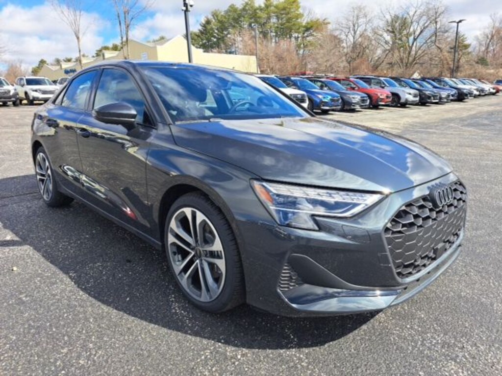 Manhattan Gray Metallic 2025 Audi A3 40 Premium Plus quattro quattro 7-Speed Automatic S tronic 2.0L 4-Cylinder TFSI quattro, Brown Leather, ABS brakes, Alloy wheels, Electronic Stability Control, Front dual zone A/C, Heated door mirrors, Heated Front Bucket Seats, Heated front seats, Illuminated entry, Low tire pressure warning, Power moonroof, Remote keyless entry, Traction control.